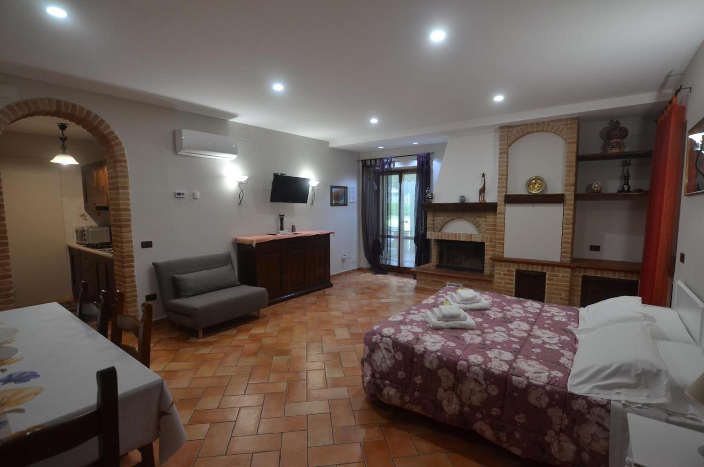 Monolocale con Vista Giardino. Guests will have a special experience as the studio provides a fireplace. Meals can be prepared in the kitchen, which is equipped with a stovetop, a refrigerator, kitchenware and an oven. This air-conditioned studio features a desk, a patio, garden views and a private bathroom.